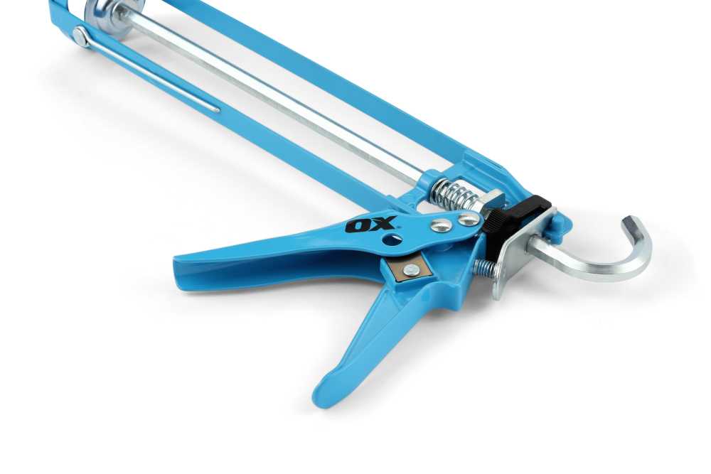 The OX Pro 10-Ounce Skeleton Caulk Gun is built for precision, durability, and ease of use. With a 10:1 thrust ratio, it delivers smooth and consistent flow for a variety of sealants. A drip-to-non-drip switch gives you full control to minimise mess, while the ergonomic trigger and lightweight frame reduce fatigue during extended use. Featuring a built-in spout cutter and seal punch, it’s ready to go straight out of the box - ideal for both professional trades and home projects.