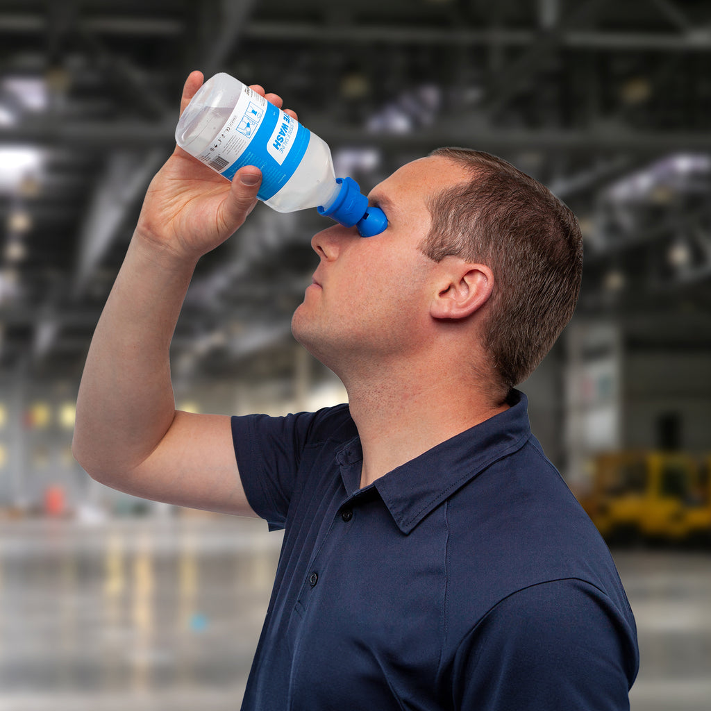 The FastAid S4 Eye Wash is a sterile 0.9% sodium chloride solution designed to provide immediate relief from eye irritation caused by dust, debris, or chemical exposure. Featuring an integrated eye shower nozzle, this advanced design enhances flow concentration for more effective flushing of the affected eye.