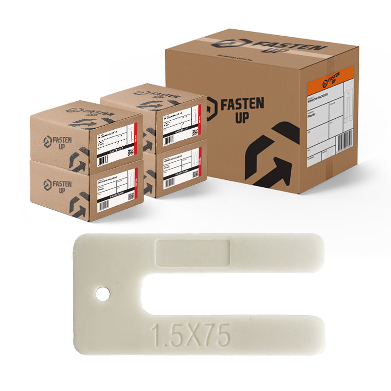 Packing ShimsPlastic Window Packer - Horseshoe - 75 x 1.5mm - White - Box 800