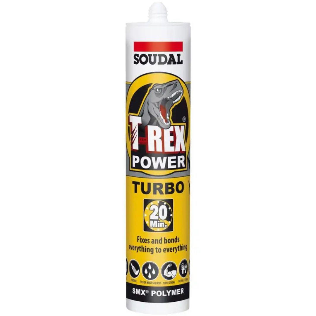 Soudal T-Rex Power Turbo is a KOMO certified, high quality, easy to use adhesive sealant based on SMX® Polymer. T-Rex Power Turbo has very fast strength build-up, ideal