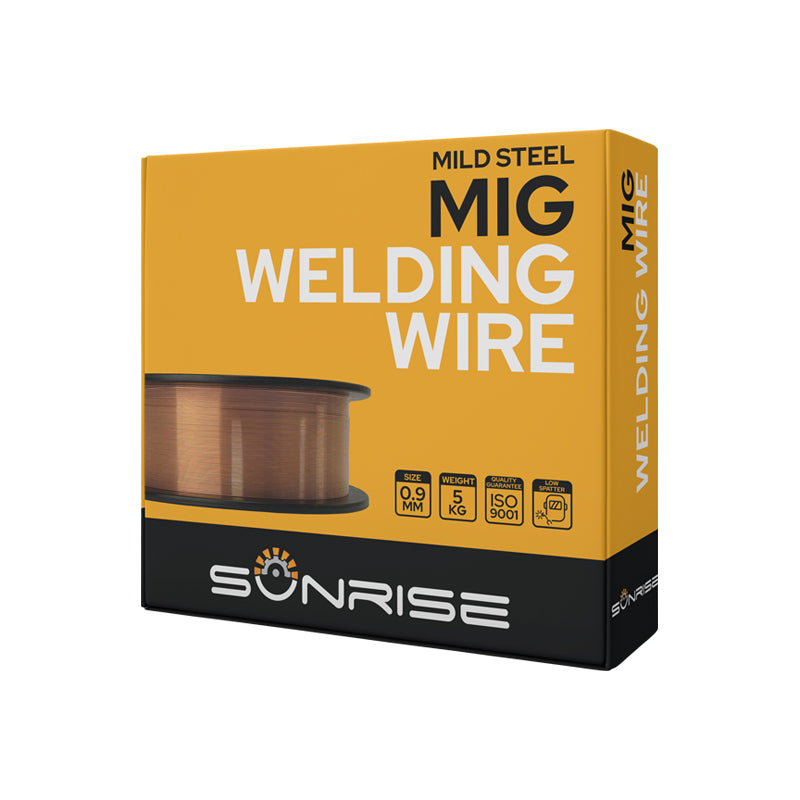 Sunrise MIG Welding Wire offers precision and efficiency for MIG (GMAW) applications. With a 0.9mm diameter and 5 Kg spool (200mm diameter), this copper-coated mild steel wire ensures smooth feeding and reliable performance within a current range of 80-160A DC+. Ideal for multipass welding, it features low spatter, high precision, and an elevated manganese and silicone content for clean, durable welds.