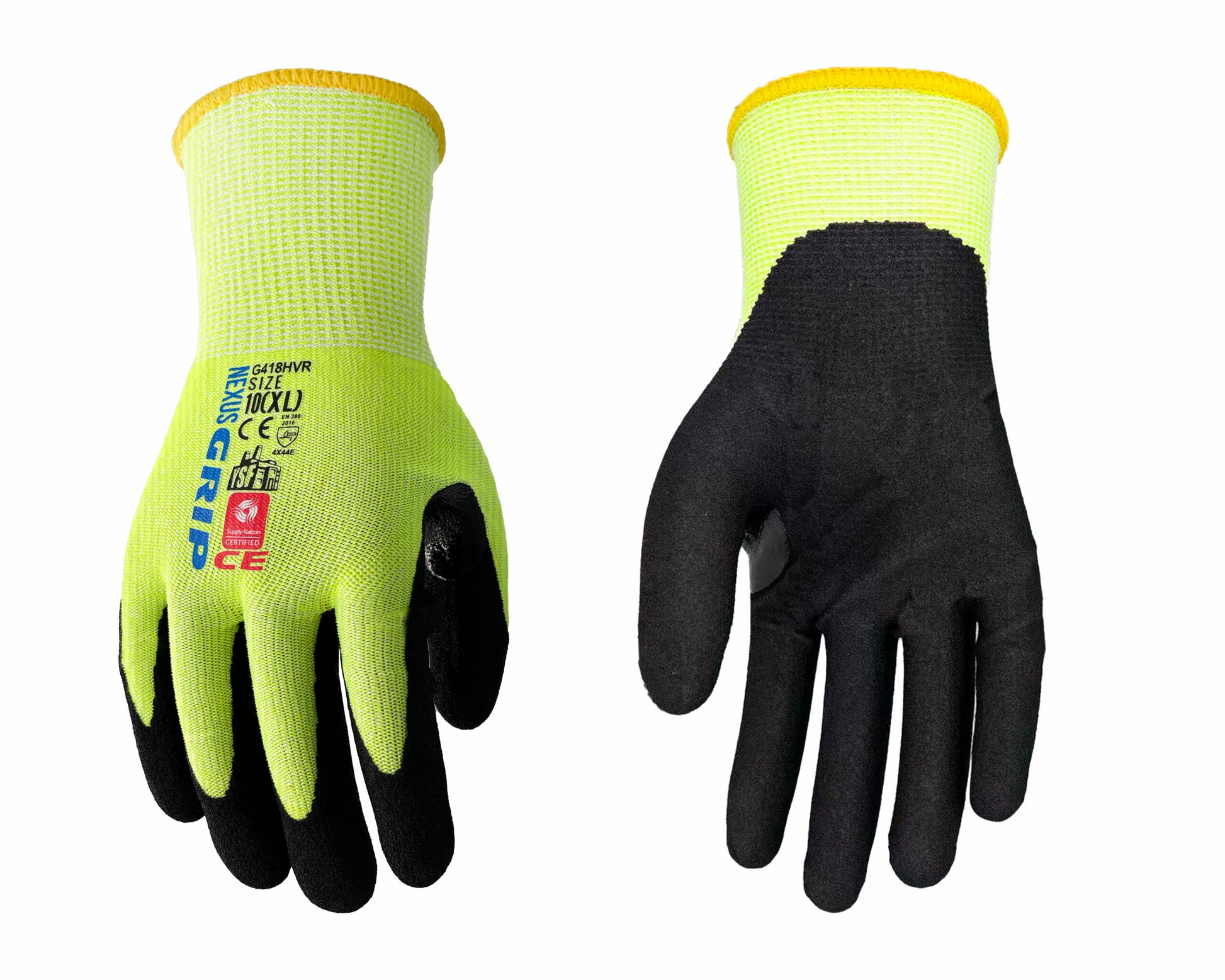 The Nexus GRIP Hi-Vis glove promotes safety with all of its functions. It is a Hi-Vis glove with coating technology so you know the glove will grip even when in wet and oily conditions.